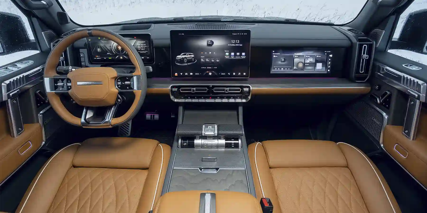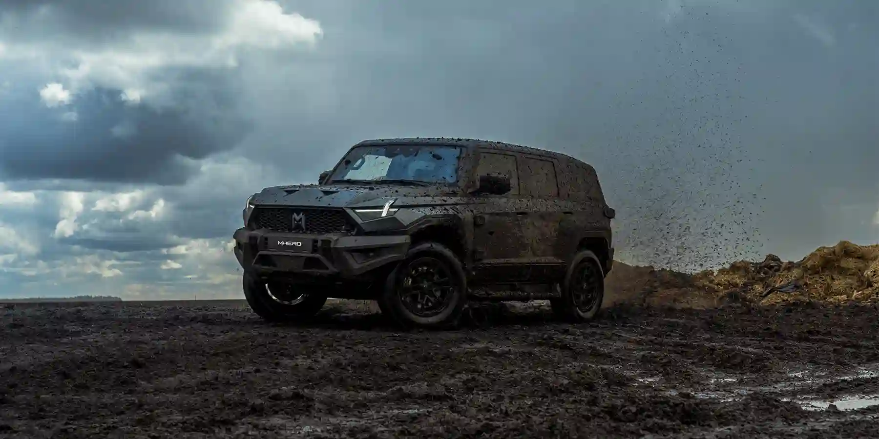 Внешне он действительно крут. Команде дизайнеров корпорации Dongfeng, которой принадлежит марка MHERO (на родине его называют «Менши», то есть «Воин» или «Уорриор» по-английски), удалось создать автомобиль одновременно воистину огромный, максимально брутальный, предельно агрессивный и в определенном смысле даже изящный. Весь секрет — в пропорциях: «М-Герой» на 397 мм длиннее и на 149 мм шире «Гелендвагена» от Mercedes Benz, но на 35 мм ниже. А потому кажется, особенно на фото, не таким уж и большим. И только когда видишь его воочию, впервые пытаешься взобраться на капитанский мостик этого корабля пустыни, понимаешь, насколько MHERO 917 грандиозен.