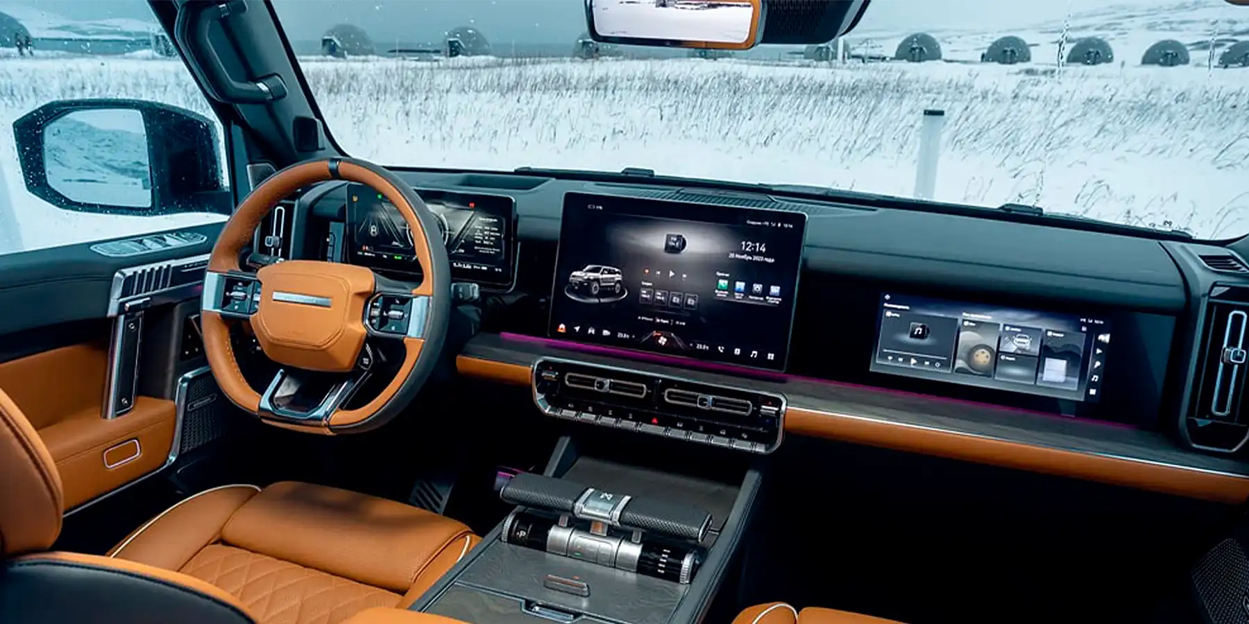 Помимо датчиков глубины брода, внедорожник оснащен камерами кругового обзора с функцией «прозрачного капота», а также умной системой распознавания препятствий. Стереокамера под лобовым стеклом непрерывно сканирует дорогу перед машиной, передает картинку бортовой нейросети, а та распознает тип грядущей неровности и заранее подстраивает подвеску, чтобы максимально эффективно погасить удар. То же самое с внедорожными режимами: MHERO понимает, на каком покрытии находится, и автоматически выбирает алгоритмы управления тягой, блокировками дифференциалов и вспомогательными системами.